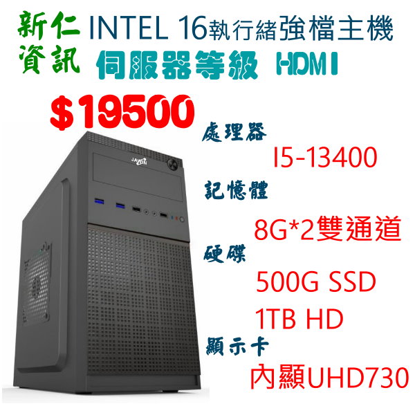 新仁資訊-商用軟體.凌越DIY.凌越ERP.監控設備及安裝.電腦組件.品牌電腦.中古主機.特價商品.新莊電腦維修.板橋電腦維修 -- INTEL16執行緒文書電腦I5-13400/16G/500GSSD+1TB+650W "